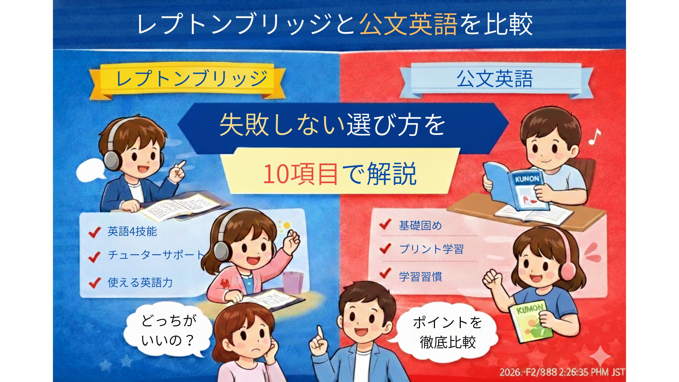 レプトンブリッジと公文英語を比較|失敗しない選び方を9項目で解説!